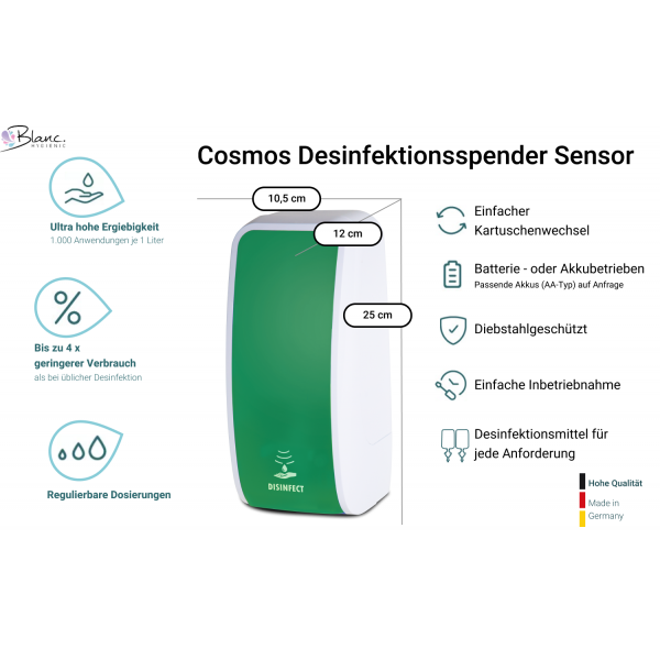 Flüssige, medizinische & hygienische Hand- & Hautdesinfektion für Blanc Cosmos Desinfektionsspender.