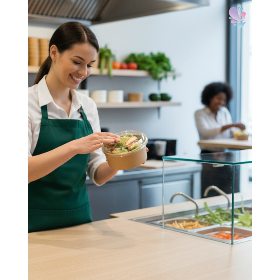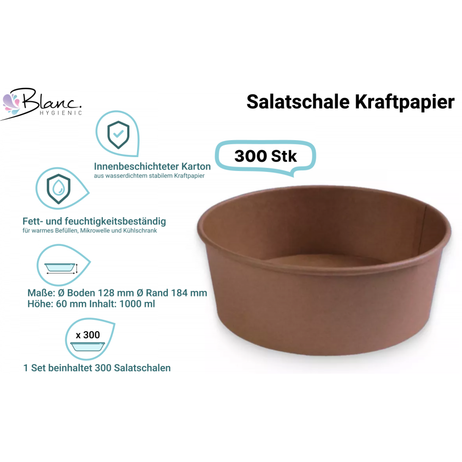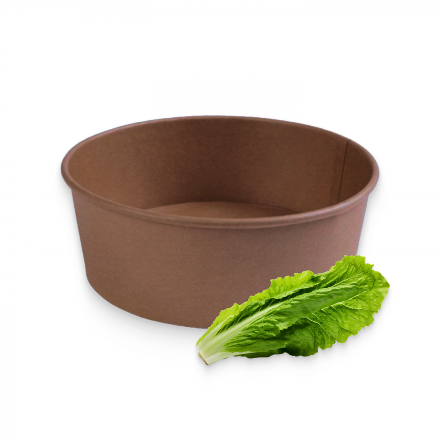 SET: Salatboxen Salatschalen braun 1000ml + Deckel, 300 Stück, to go, take away, Pappe/PLA + recyceltes PET