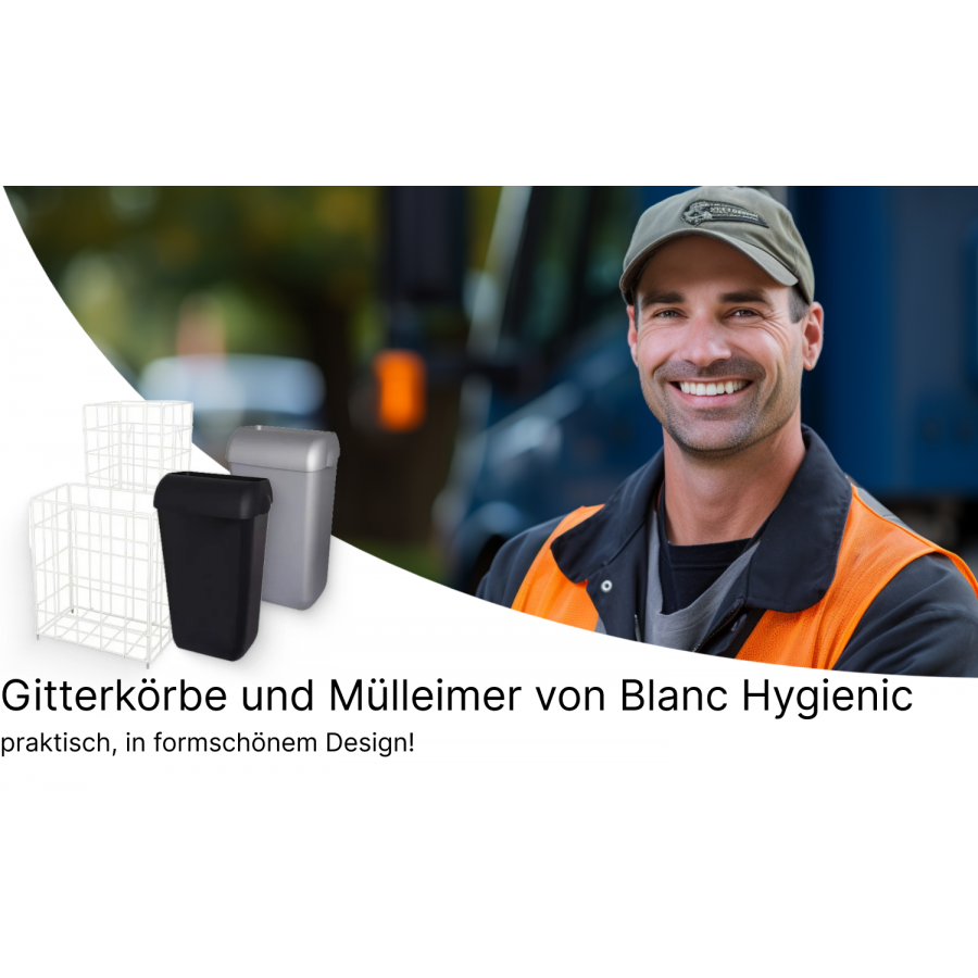 Der Gitterkorb von Blanc Hygienic ist die perfekte und günstige Alternative zu herkömmlichen Abfallbehältern. Durch das massive Drahtgeflecht lässt sich der Abfallkorb in zahlreichen Bereichen sicher aufstellen oder im Handumdrehen an die Wand montieren.