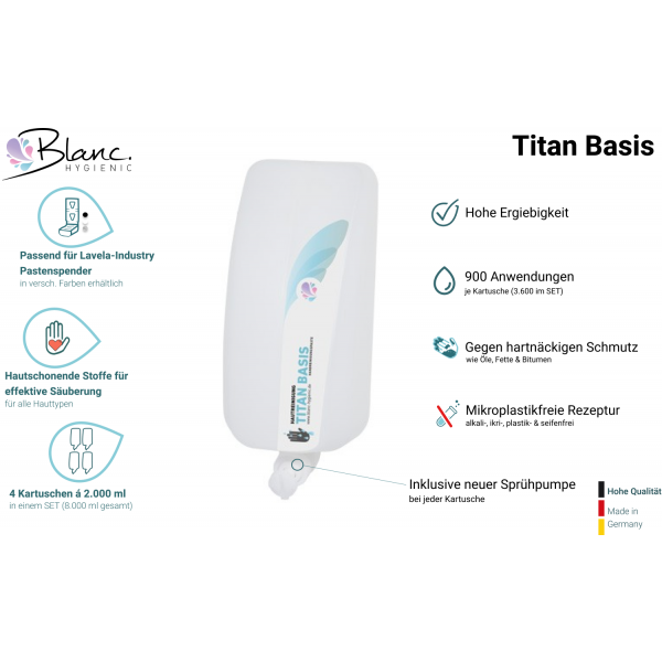 Grobreiniger für Hände, Lavela Titan Basis, 4x2-Liter Kartuschen je SET
