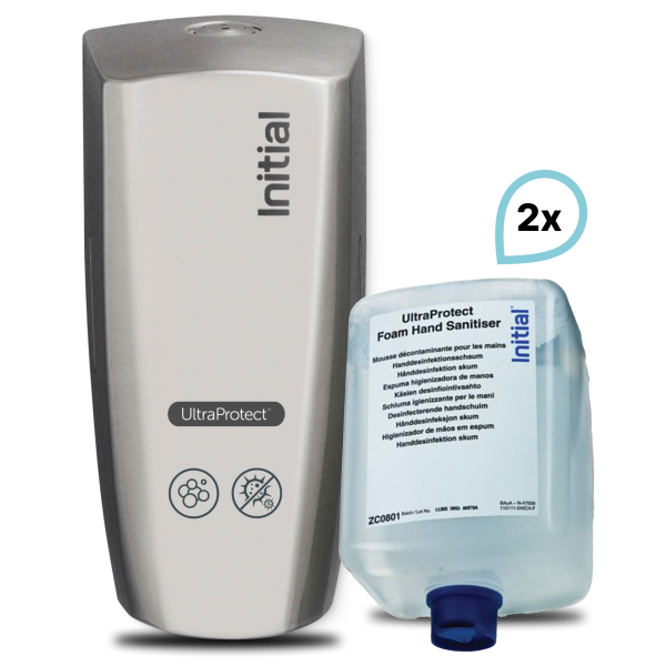 Desinfektionsschaum UltraProtect, 99,9% Wirkkraft gegen Bakterien & Viren, sehr hautschonend & geruchsneutral, bis zu 600 Anwendungen je 375 ml, SET 2 x 375 ml, INITIAL