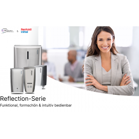 Die Reflection KOMPAKT MANUELL Desinfektionsschaumspender bieten eine zuverlässige und hygienische Lösung für die Handdesinfektion in sensiblen Umgebungen. Dank des ergiebigen UltraProtect Desinfektionsschaums und ihres robusten Designs sind sie ideal für Räume mit begrenztem Platzangebot und bieten effektiven Schutz vor Krankheitserregern.