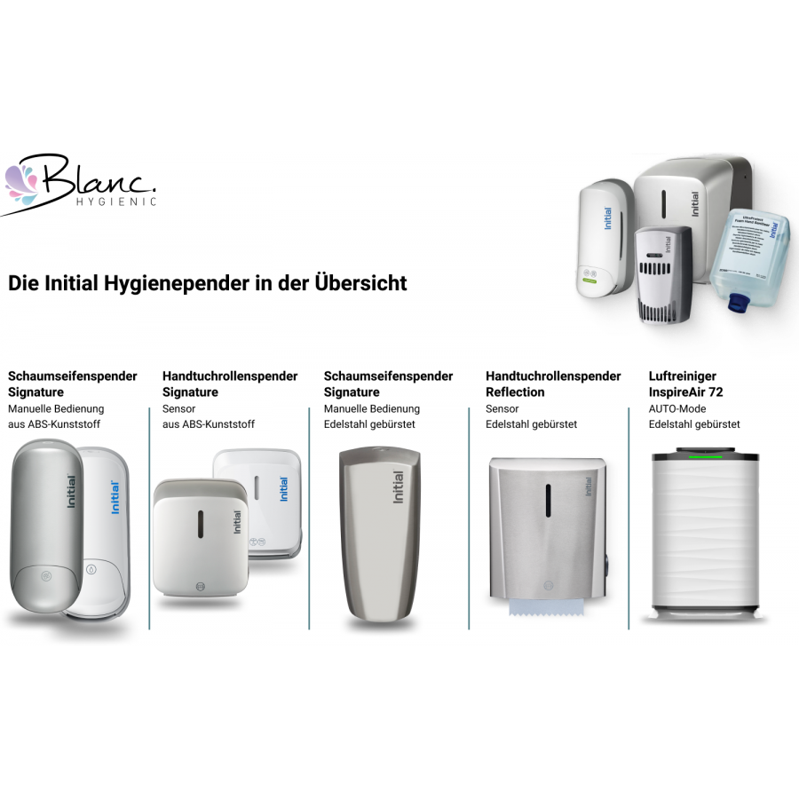 Desinfektionsschaumspender Reflection KOMPAKT MANUELL, bis zu 600 Anwendungen je 375 ml, PREMIUM DESIGN, Edelstahl gebürstet + 2 x Desinfektionsschaum UltraProtect, INITIAL