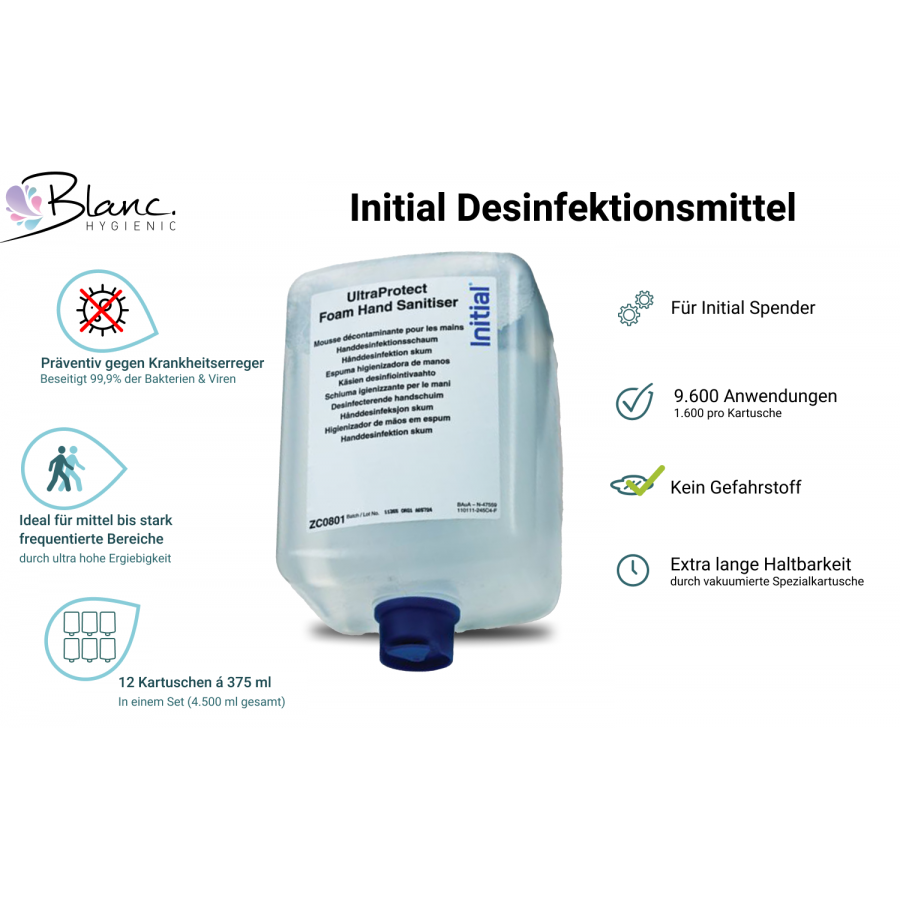 Desinfektionsschaum UltraProtect, 99,9% Wirkkraft gegen Bakterien & Viren, sehr hautschonend & geruchsneutral, bis zu 600 Anwendungen je 375 ml, SET 12 x 375 ml, INITIAL