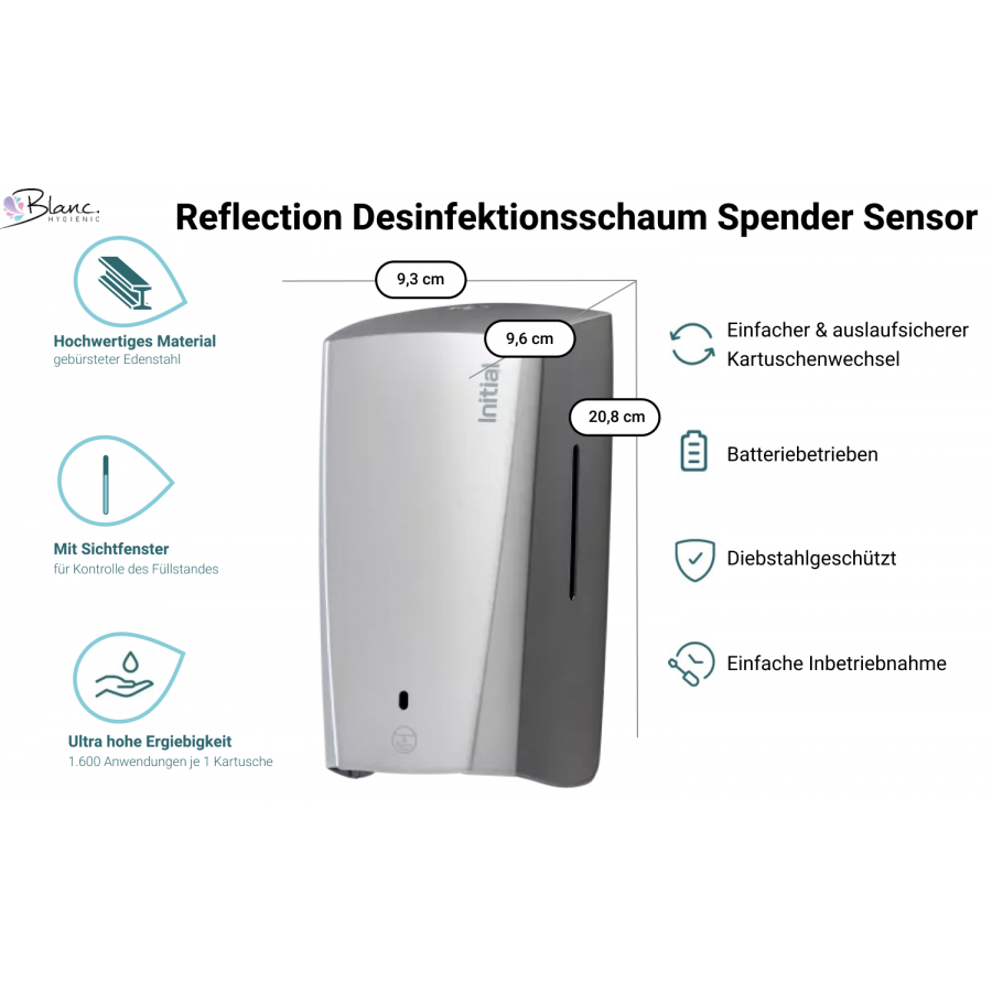 Desinfektionsschaumspender Reflection LARGE SENSOR, berührungslos, bis zu 1.600 Anwendungen je 1.000 ml, PREMIUM DESIGN, INITIAL