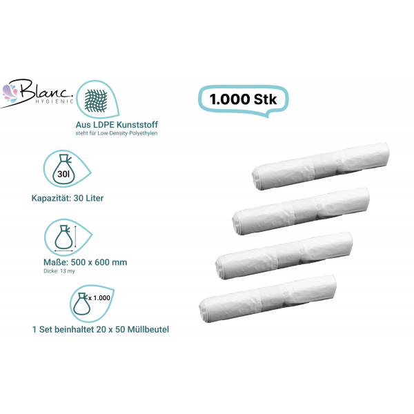 1 SET beinhaltet 20 x 50 Müllbeutel = 1.000 Müllbeutel