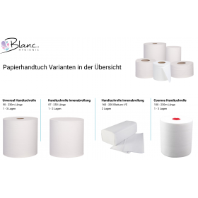 Die Handtuchrollen Universal von Blanc Hygienic sind eine adäquate sowie günstige Lösung für eine Vielzahl von gängigen Handtuchrollenspender. Anhand der Rollenmaße Rollenbreite, Rollendurchmesser, Kerndurchmesser finden Sie in unserem Shop ganz einfach die passende Handtuchrolle für Ihren Bedarf. Gerne beraten wir Sie zu den für Sie passenden Handtuchrollen und unterbreiten Ihnen ein passendes Angebot.